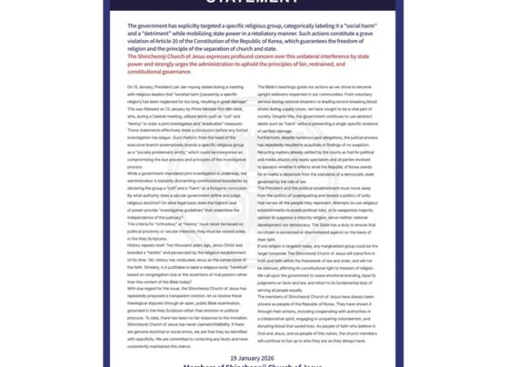 Politicians and certain media outlets must stop exploiting Shincheonji Church of Jesus for political contention. The Joint Investigation Headquarters must…